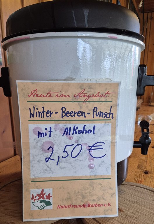 Neben den bekannten Getränken überraschten die NaturFreunde ihre Gäste erneut mit einer besonderen Winter-Spezialität: einem heißen Winter-Beeren-Punch mit Schuss, genau das Richtige, um sich bei kaltem Wetter aufzuwärmen. Abgerundet wurde der Nachmittag selbstverständlich durch ein reichhaltiges Kuchenangebot, dass ebenfalls großen Anklang fand.